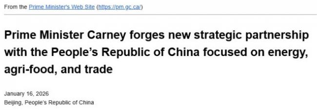 发布卡尼访华新闻稿,题为:卡尼总理与中华人民共和国建立新的战略伙伴关系,聚焦能源、农产品与贸易。