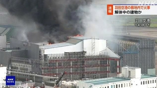 今天早上,东京羽田机场的一栋建筑物发生火灾。