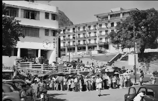 五十年代中环缆车站排队情景