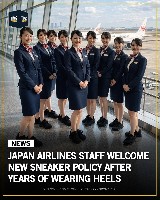 过去,JAL的机舱服务员及机场工作人员皆需穿著皮鞋、高踭鞋(Pumps和Heels)。