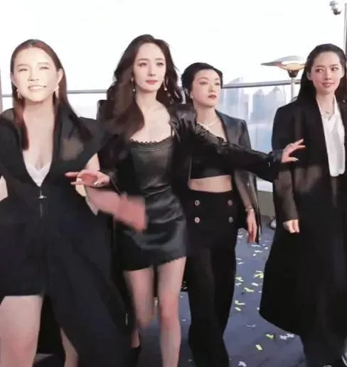 谢依霖也多了一点小心机,内搭是深V,突出傲人身材,但四人中无疑还是杨幂最有看点了。