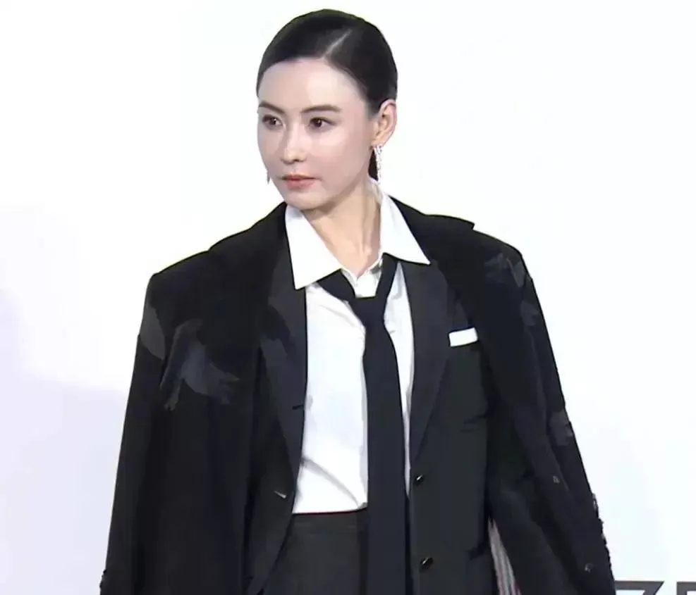 郭碧婷虽然长相五官很有优势,不过这次走的却是中性风格,穿宽大的西装和大背头,看起来很有御姐范,但就不如杨幂有两点了。