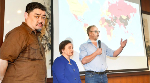 “无国界记者组织”台北亚洲行政中心2017年7月18日举行成立发布会,秘书长德洛瓦(右)、诺贝尔和平奖得主伊巴迪、无国界记者组织荣誉董事吾尔开希出席说明。(图片来源:自由时报)