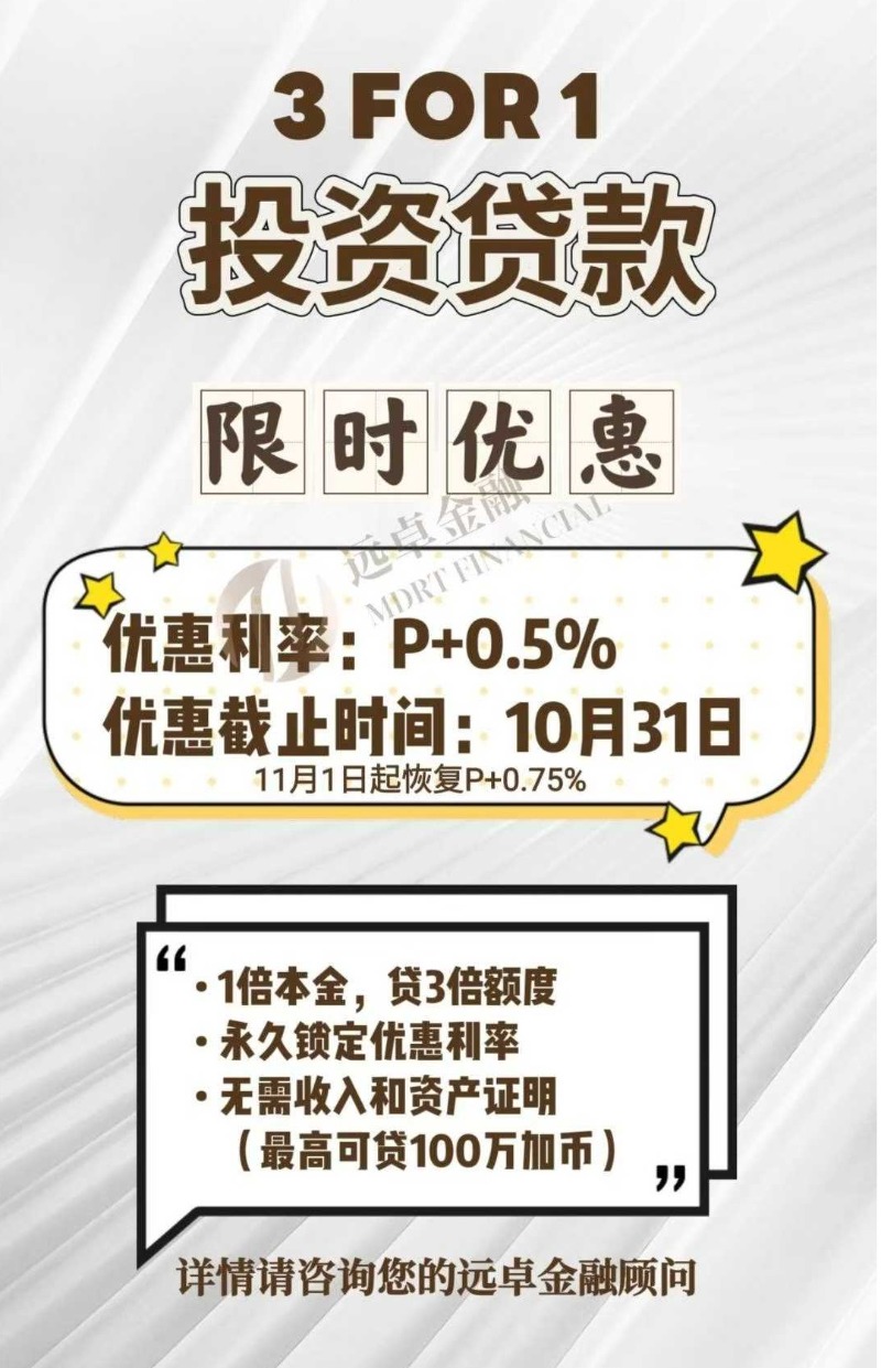 胜群金融 于 2025-10-11 18:51 写道: 💼 B2B银行投资贷款限时优惠 💼 抓住机会,让财富加速增长! 现在申请即可享受: ✨ 1倍本金可贷3倍额度 ✨ 永久锁定优惠利率:P + 0.5% ✨ 最高可贷 100 万加币 ✨ 无需收入与资产证明 ✨ 贷款可用于投资 IA / Canada Life 投资类产品 ⏰ 优惠截止日期:2025年10月31日 让资金更高效地为你工作,把握限时利率优势,从今天开始布局你的未来! ![]() |