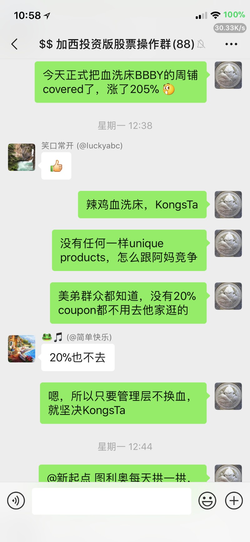 枫雅哲 于 2019-4-19 11:09 写道: Good Friday!祝投资版的各位复活节长周末愉快。 由于今天放假,本周美加股市只有四个交易日。回顾本周拔得头筹的版竞操作,基本就是一个字,KongsTa。 血洗床 BBBY 在去年时就提过,是一个KongsTa的好标的。主要原因,跟大部分零售商类似,都是受到来自阿妈 AMZN 的冲击。而本身销售的产品也不unique,店里能买到的在网上就能找到。再者,相信大多美加的消费者都知道的一点,如果没有20%的coupon,是不会去他家消费的。 ![]() 另外,之前由于主要的activist investor group,要求其董事会全体成员辞职并进行改革,其股价从年初至今已涨接近三成,而当季的ER继续报营收减速的预后,再次给空头上车KongsTa的机会。 ![]() 操作复盘完毕,最后借本帖,稍微分享一下,2019年截至三月,YTD的收益为21.1%。 ![]() 至于过去三年,每年的平均收益在23% (18.4 ~ 27.6%);过去五年,每年的平均收益在22% (20.9 ~ 23.2%)。 ![]() 而账户能统计到的数据,则是自2012年开始(实际美加股票投资从2011年开始),平均年收益在18.6% (18.3 ~ 18.9%)。 ![]() 多谢各位! |