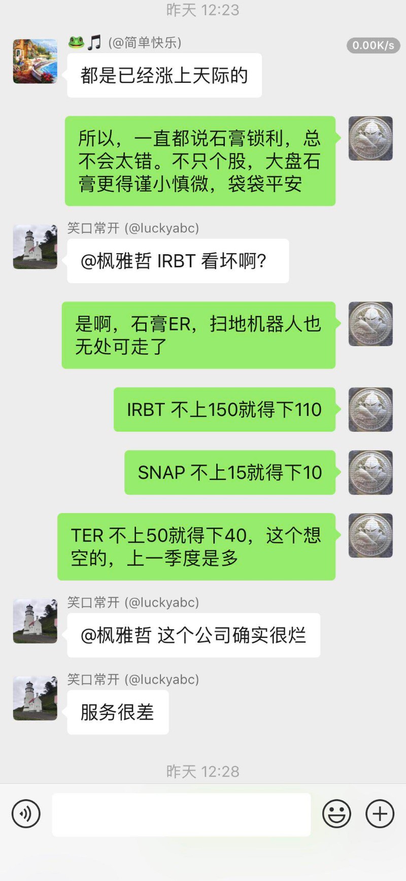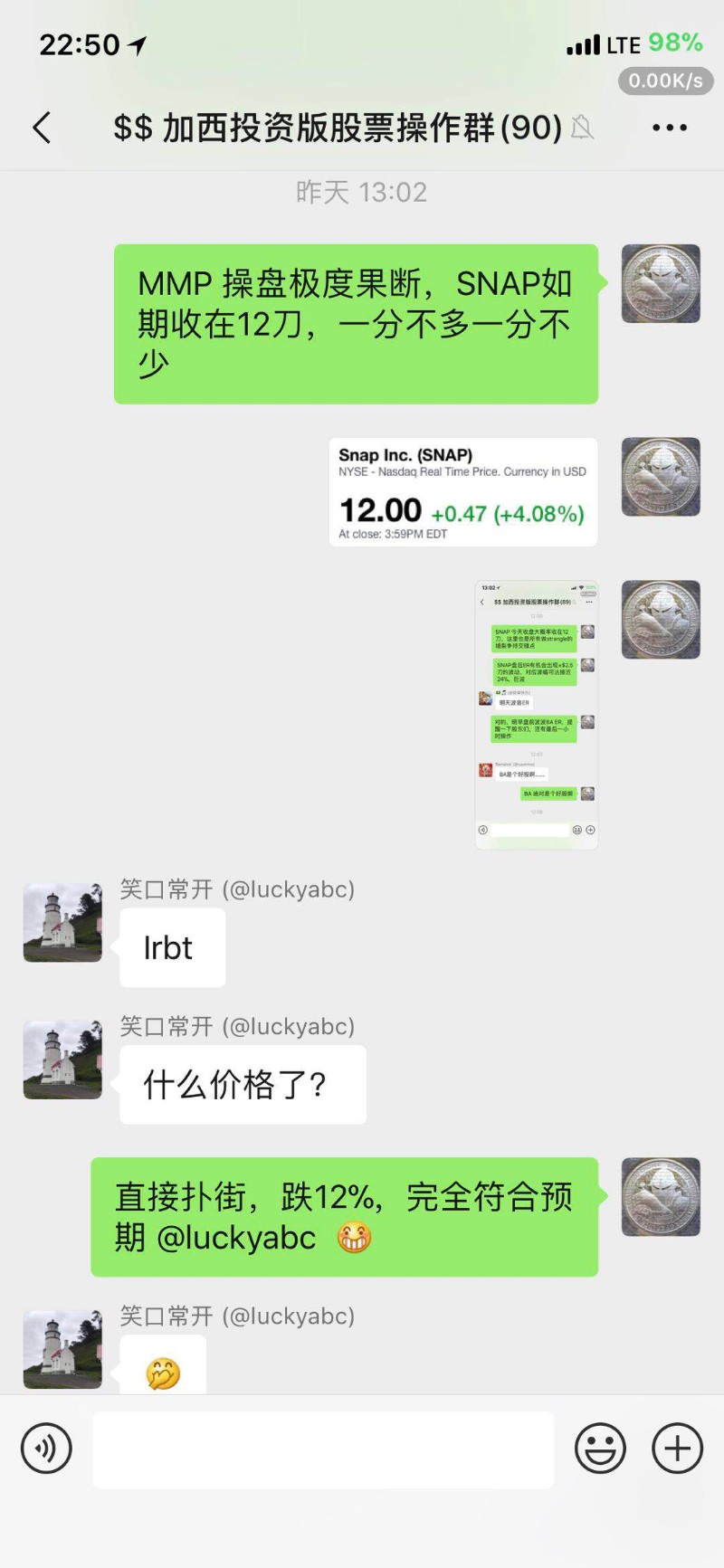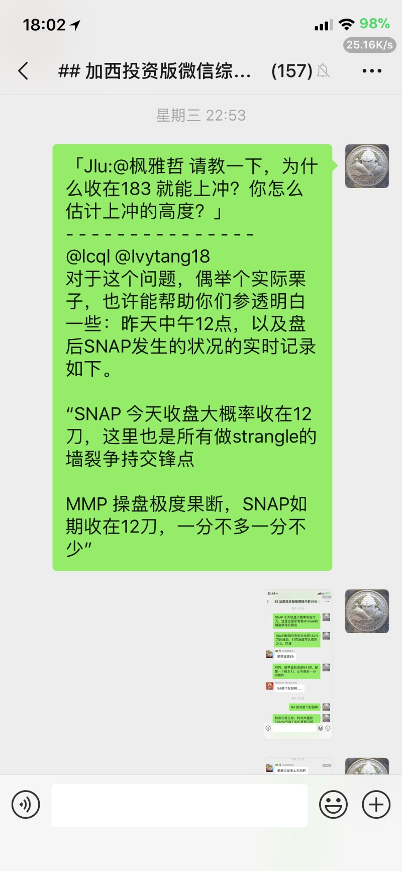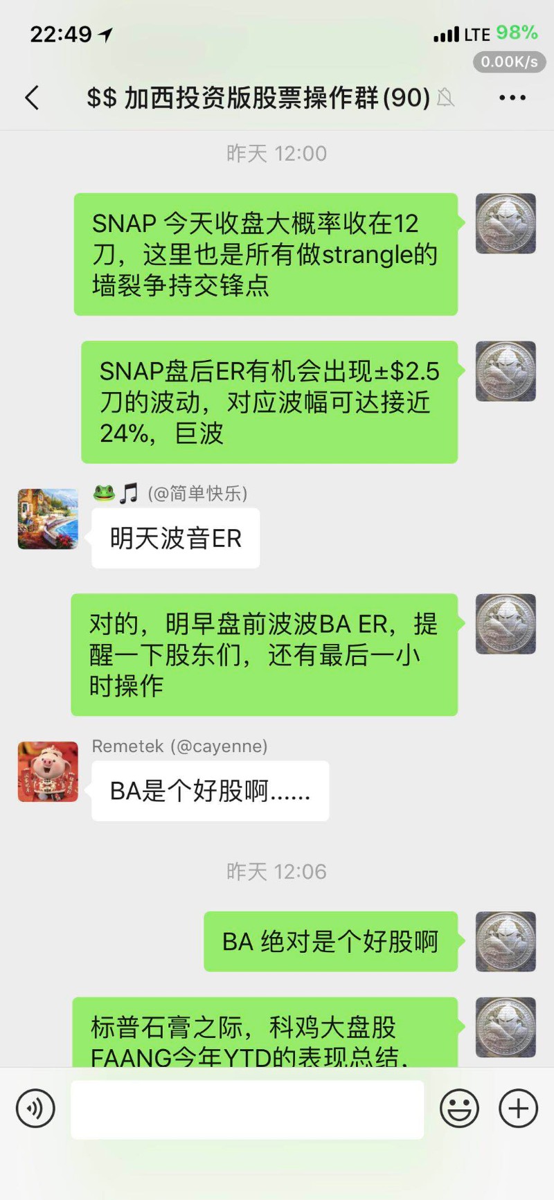 枫雅哲 于 2019-4-26 18:20 写道: TGIF!祝投资版的各位周末愉快。 由于周末出游,就赶在下班前,把本周的心得发了吧。回顾本周拔得头筹的版竞操作,还是那个字,KongsTa,不过并不是依赖上两周累积下来的优势,而是真实的临场操刀。 具体的分析和操作理由,在版上的比赛贴,以及群里均有解释,请各位同仁选择查看。 www.westca.com/Forums/...inese.html ![]() 投板微信综合群和操作群的实时分析。 ![]() ![]() ![]() ![]() ![]() 本周后两天SNAP的走势图,基本就是在$12牛熊争持之后,多方放弃并被空方打压到$10.5刀附近,基本符合24号周三盘中分析的预期。 ![]() 上周已经分享总结过几个账户YTD和过去十年的平均年收益了(www.westca.com/Forums/...inese.html),本周再分享一个,专做options期权交易账户的MTD (四月当月) 收益,为24.7%。 ![]() Happy Trading and Investing, plus, happy End Game everyone. ![]() |