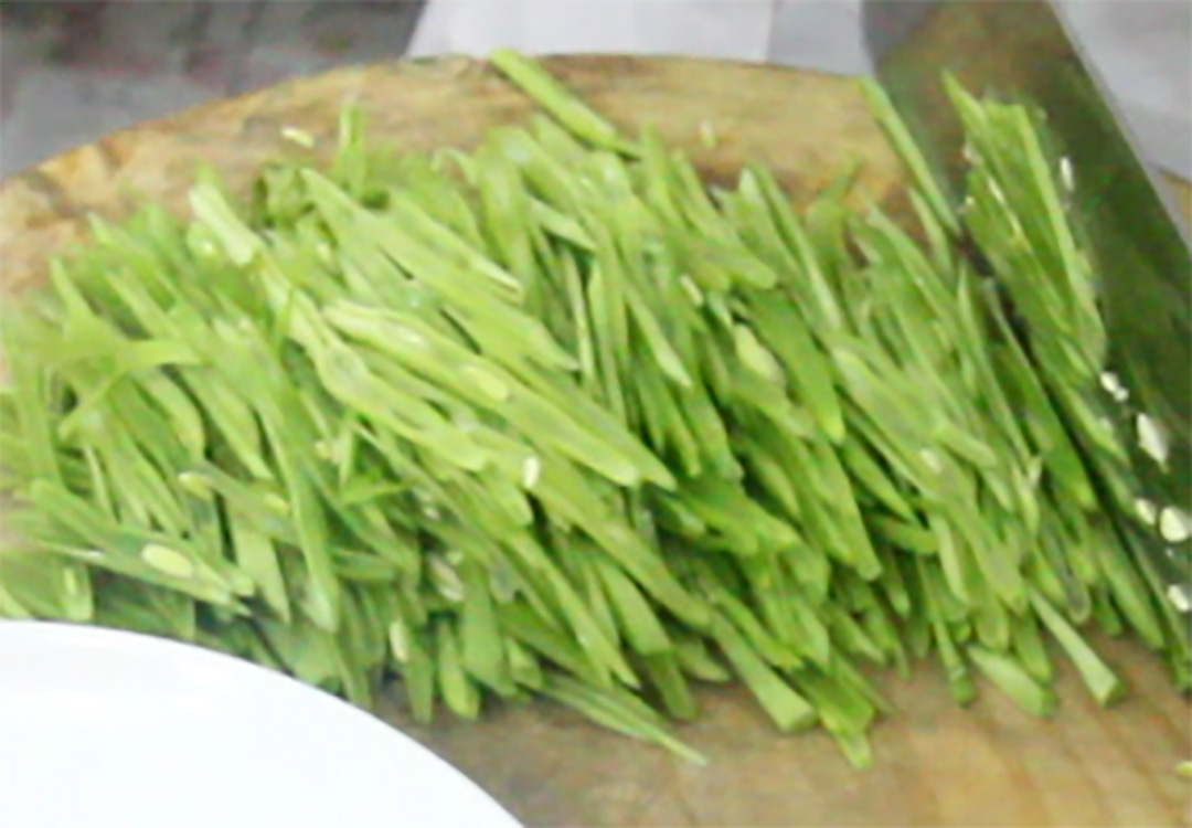 锅里烧开水,水开后倒入芸豆焯水30秒以上,想吃到芸豆的脆爽必须焯水,在后面的快炒中防止有夹生,夹生的芸豆有害人的健康,芸豆捞出后用冷水冲洗才会更脆。