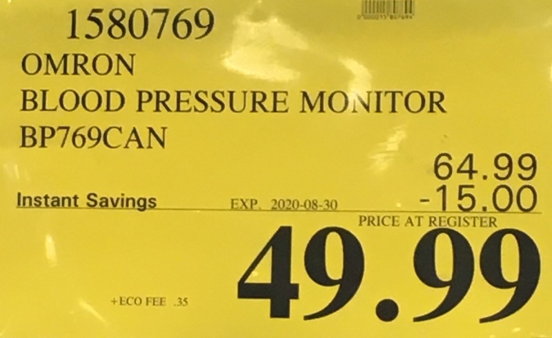 Costco 欧姆龙血压计优惠 65-15=$50 (发表于5年前)