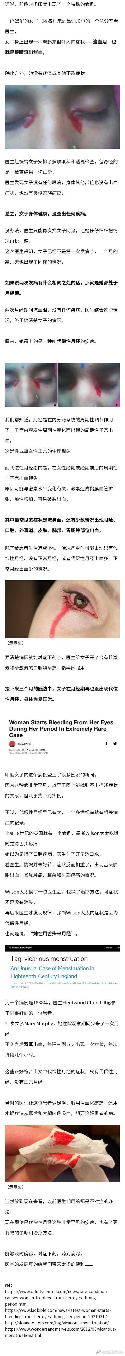 女子身体健康,却突然眼睛出血,流下血泪.......医生诊断,她是在用眼睛来月经.......... (发表于4年前)