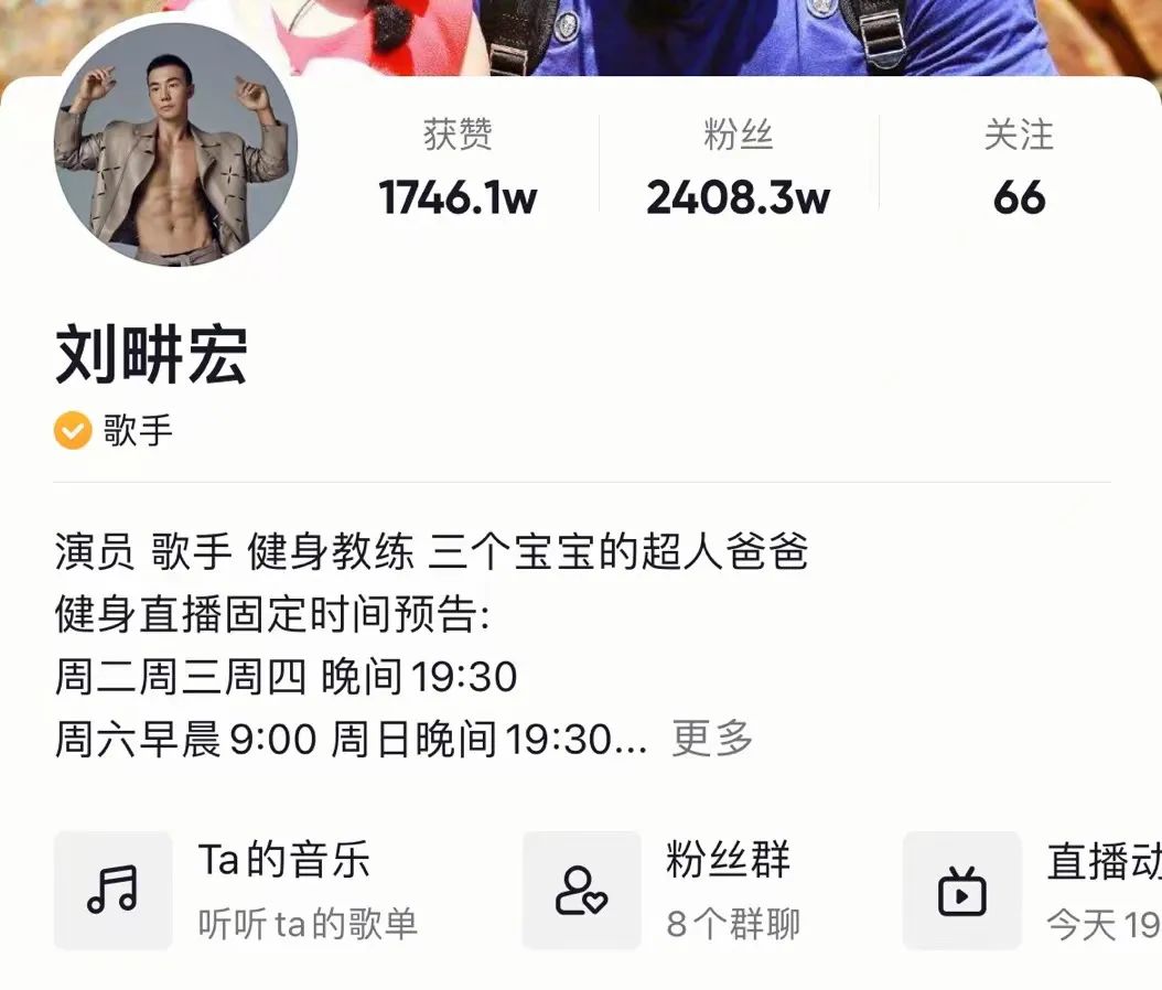 刘畊宏的涨粉速度堪称现象级。在50场健身直播后,4月20日,他在抖音的粉丝数达到了1842万,单周增长数就突破了500万。结束刚刚这场直播后,4月21日早上,他的抖音粉丝已经突破了2400万,一晚上就涨粉500多万。