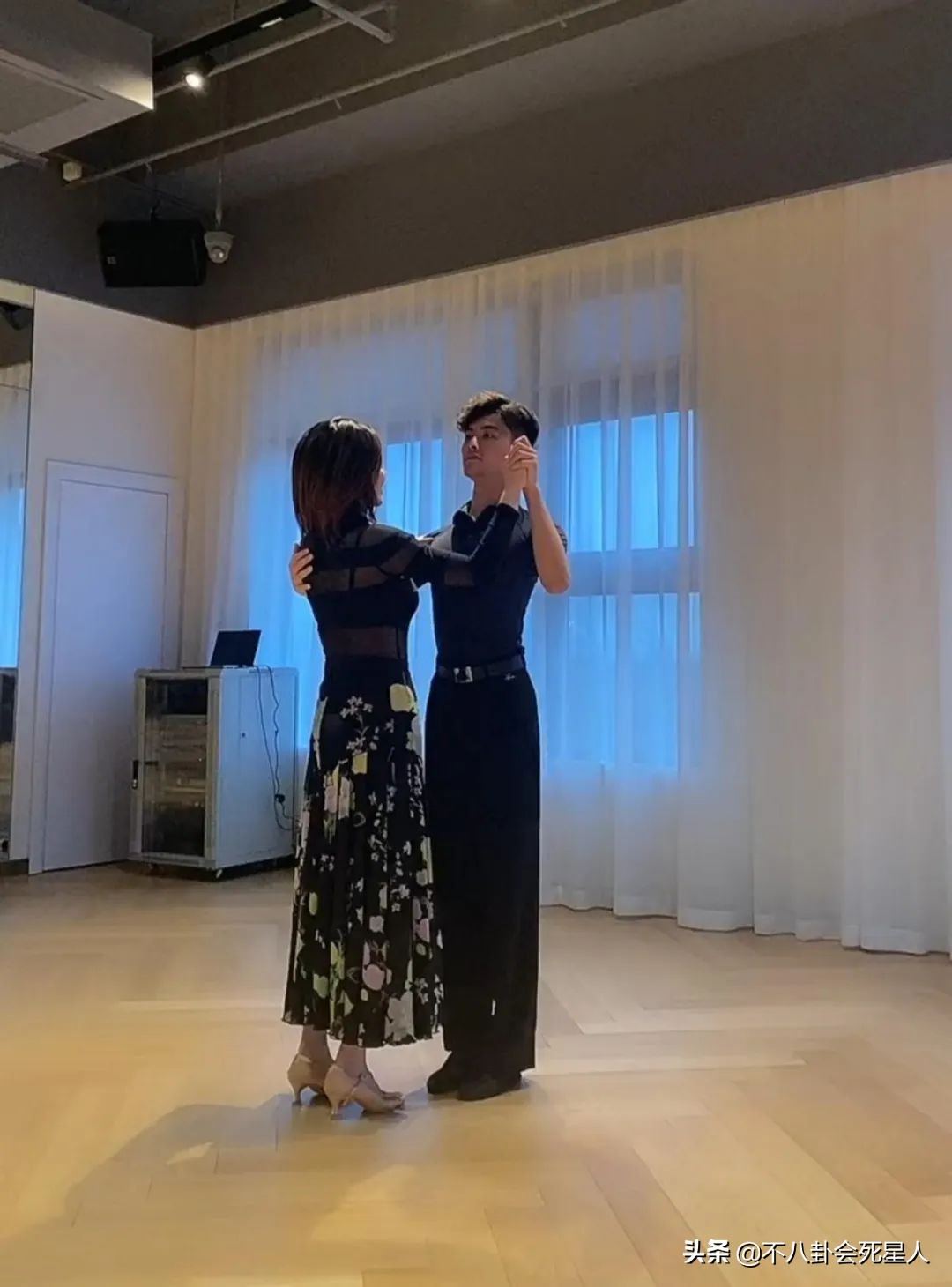 年过半百的王琳对自己的身材似乎也很有自信,练舞的时候穿着透视的黑色上衣,背部完全看不出任何赘肉。