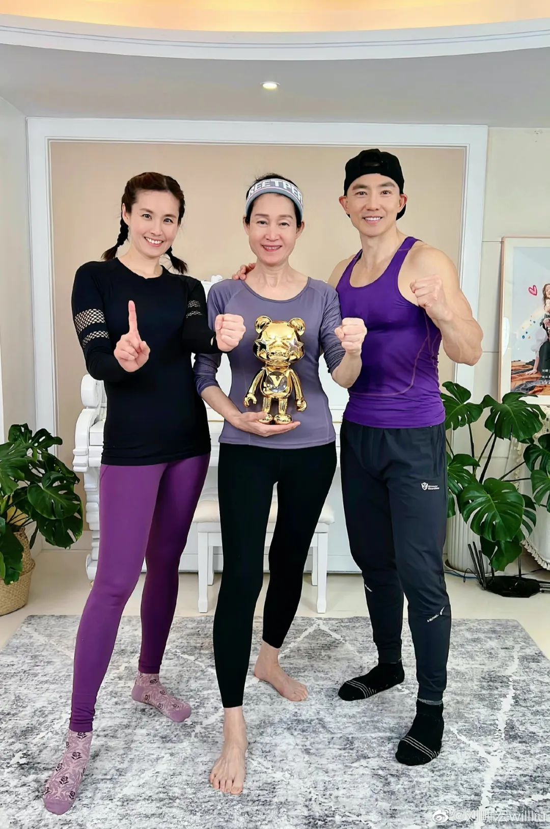 除了刘畊宏和Vivi,60多岁的岳母也出现在了这晚的直播间里,和大家一起跳操。这也确实符合他在直播间里一直喊的口号:不管是长辈还是小孩子,全家人都可以一起参与到这次健身中来。
