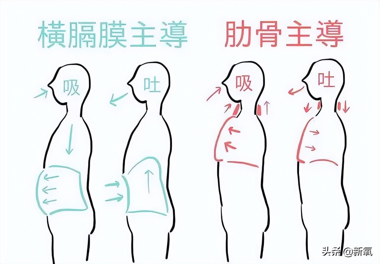 而我们的呼吸方式主要有两种,一种是肋骨主导的胸式呼吸,一种是横膈膜主导的腹式呼吸。