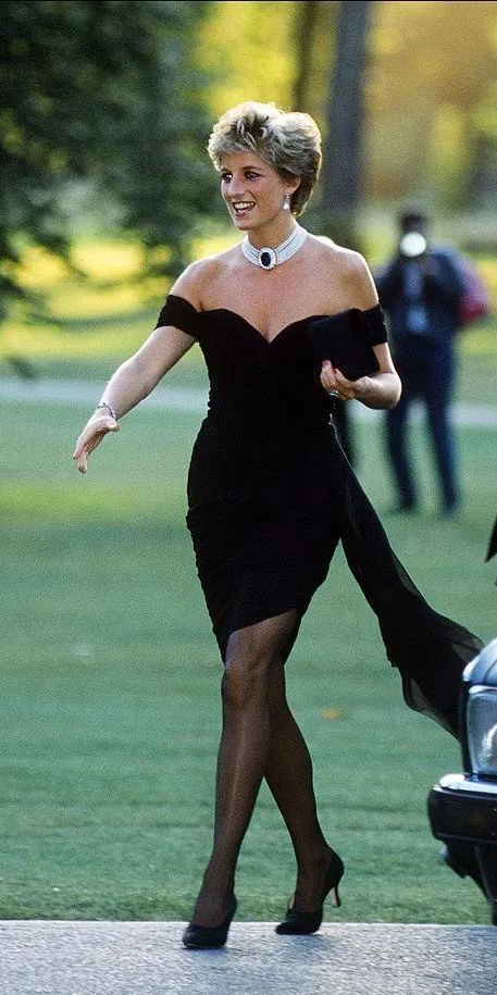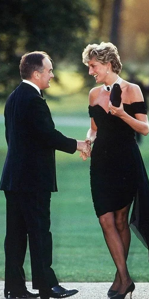 同样是小黑裙,她的这条却被媒体称为“复仇小黑裙”。设计师Christina Stambolian早在三年前就为戴安娜准备了这条低胸紧身裙,但由于缺乏自信、碍于王室的条条框框,她并没有第一时间穿上它。直到1994年,查尔斯在自己被立为英国王储25周年的时候公开向卡米拉表白,第二天参加活动的戴安娜便用这条小黑裙给出了无声胜有声的反击,这也是她彻底摆脱婚姻囚笼的标志。