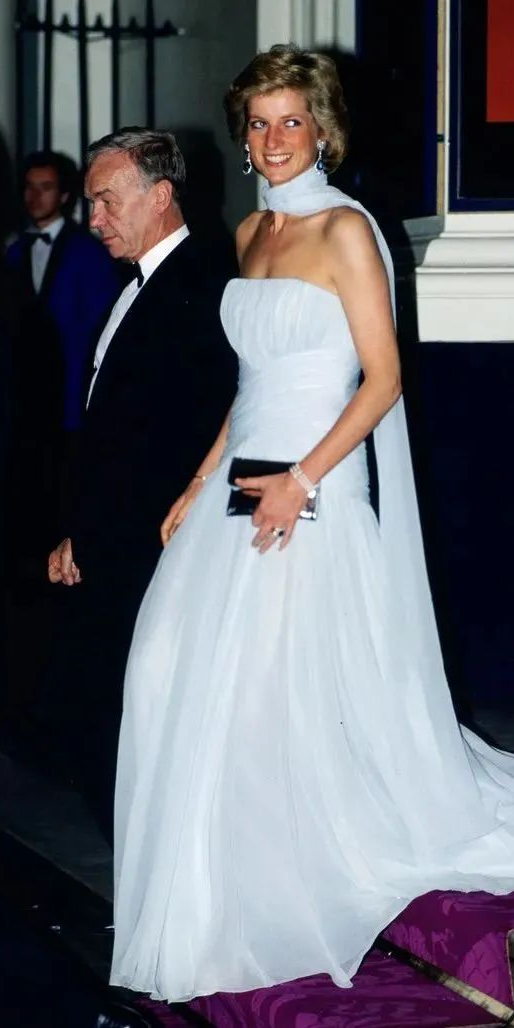 1985年,戴妃在白宫和约翰·特拉沃尔跳舞时穿的Victor Edelstein丝绒礼服高贵而不染尘俗,就连男主角都把这段舞蹈经历称作“童话故事”。据不完全统计,戴妃至少穿着这件礼服裙出席过四个重要场合,包括1986年的奥地利国事访问、1991年皇家歌剧院的晚上活动、直到1997年,她还穿着这条裙子让斯诺登勋爵为她画了肖像画……可见一条经典礼服真的穿十年都不会过时。