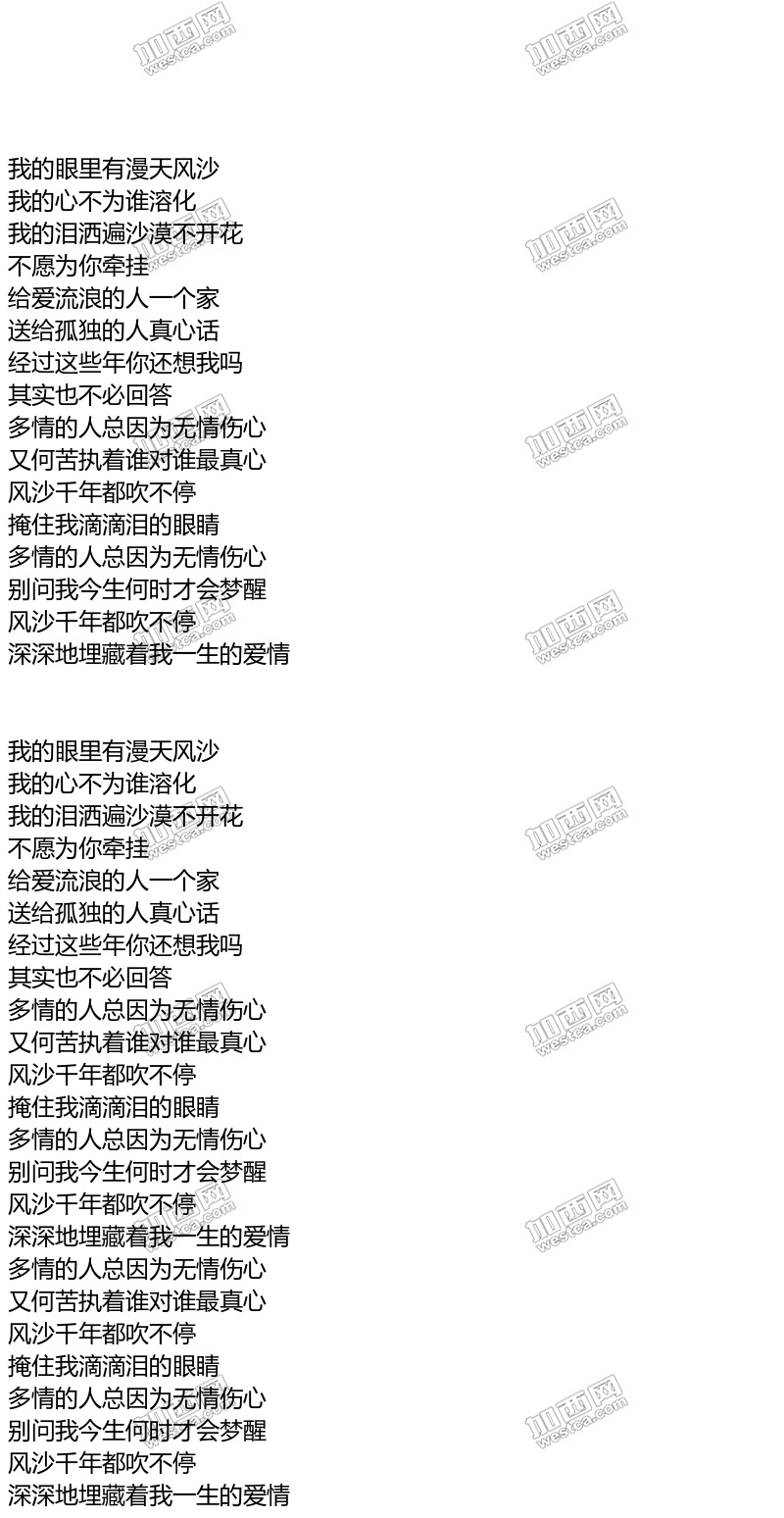 加西思念刘厅长: 我的泪洒遍沙漠不开花 不愿为你牵挂 给爱流浪的人一个家 送给孤独的人真心话 经过这些年你还想我吗