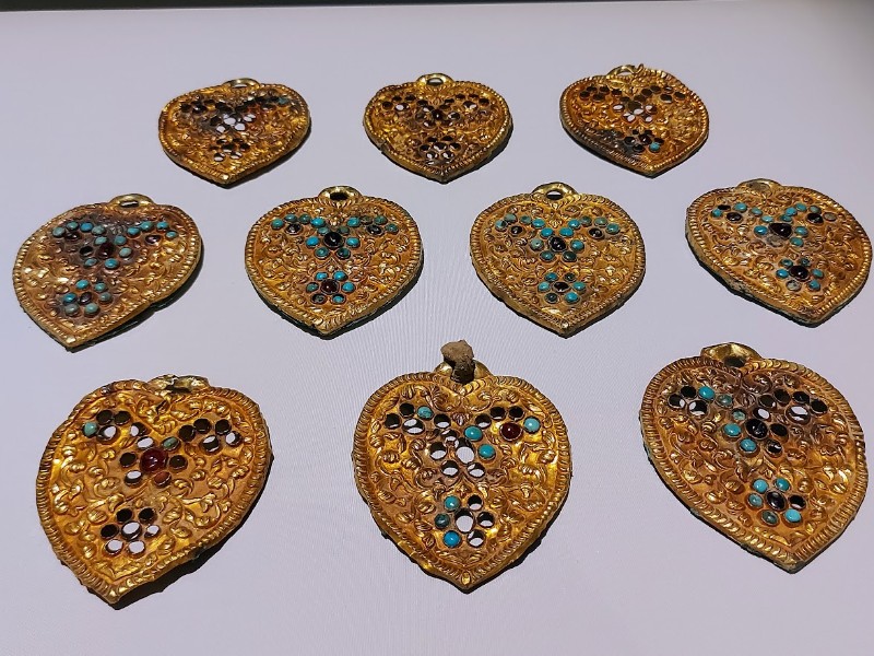 「花卉纹杏叶」吊坠属於游牧民族艺术,通常被用作头饰或衣服上的装饰。