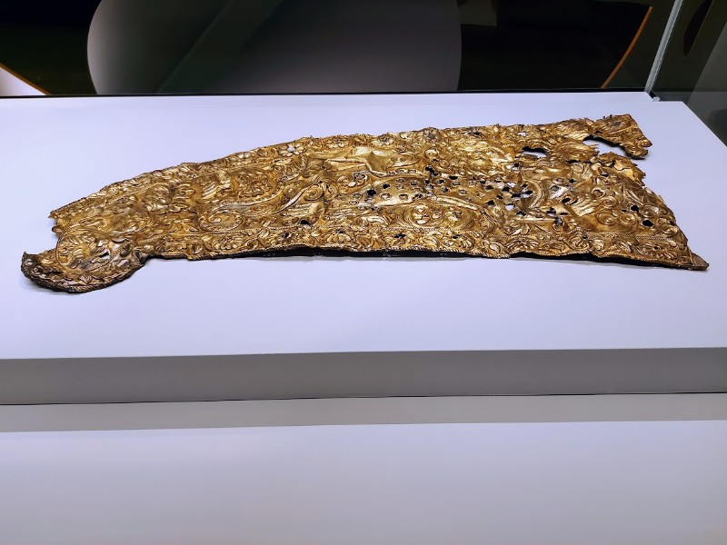 这件展品是吐蕃时期的金属饰品,可能是一件大型马具箭筒上的装饰。