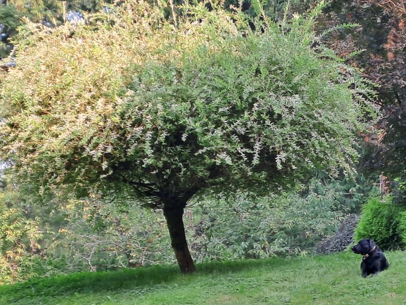 今年的熊口夺食策略是,抢先采收伸手可以够着的果子;然后与黑熊同步抢收蹬着梯子可以容易采摘的果子;顶部最好的果子留给黑熊浣熊松鼠共享。这样可以保护靠近地面的枝杈不受损坏,争取明年低处枝杈结出更多果子。顶部枝杈经过着三家强盗祸害之后,基本所剩无几,就算是它们为我义务修剪枝杈,防止果树疯狂向空中发展。