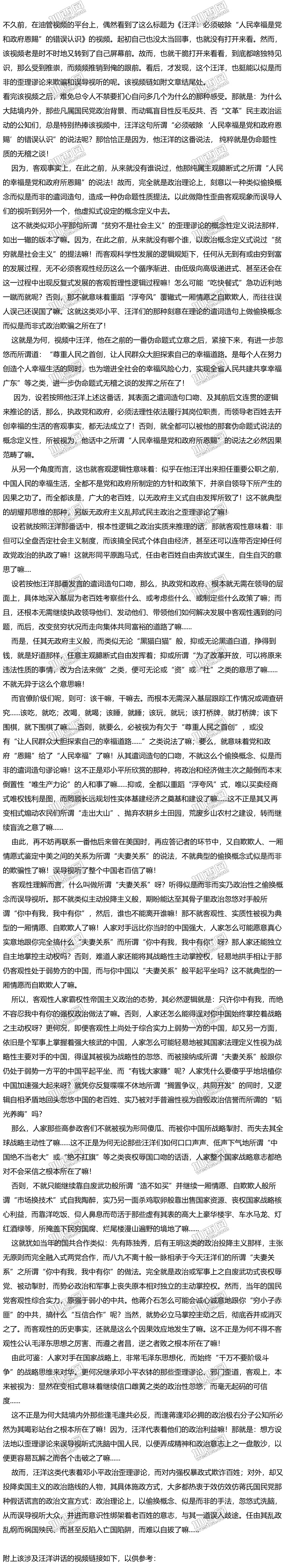 实在搞不懂汪洋为何要别出心裁地捏造“人民幸福是党和政府恩赐”之说