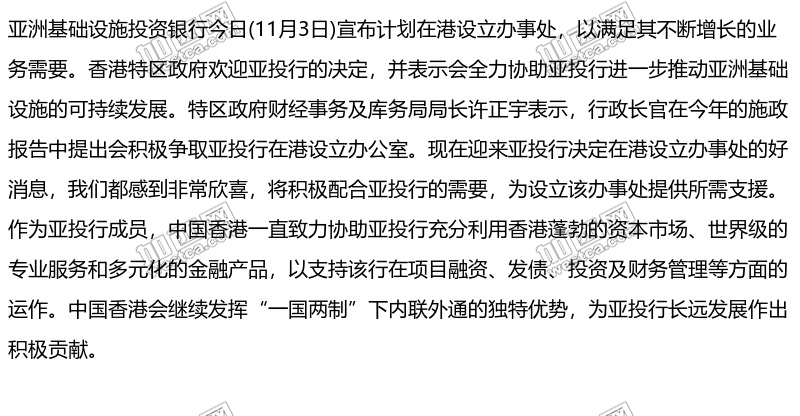 亚洲基础设施投资银行宣布计划在港设立办事处