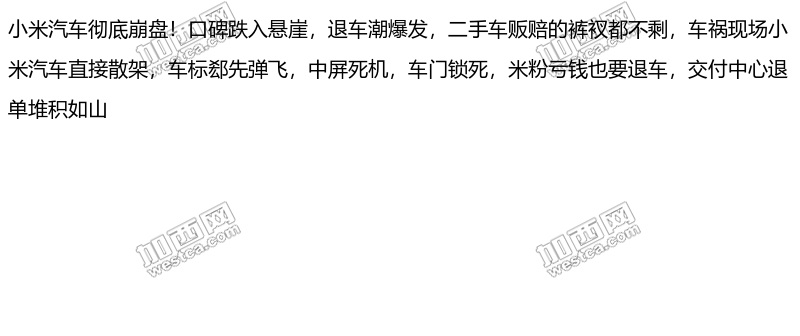小米汽車徹底崩盤!口碑跌入懸崖,退車潮爆發,二手車販賠的褲衩都不剩,車禍現場小米汽車直接散架,車標卻先彈飛,中屏死機,車