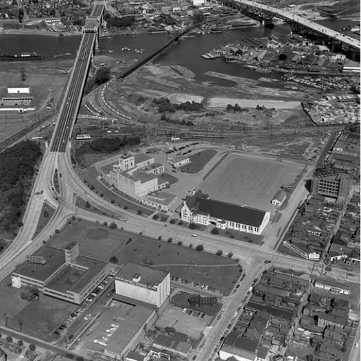 這張攝於1955年的照片展現了Burrard橋周邊地區的壯麗景色。