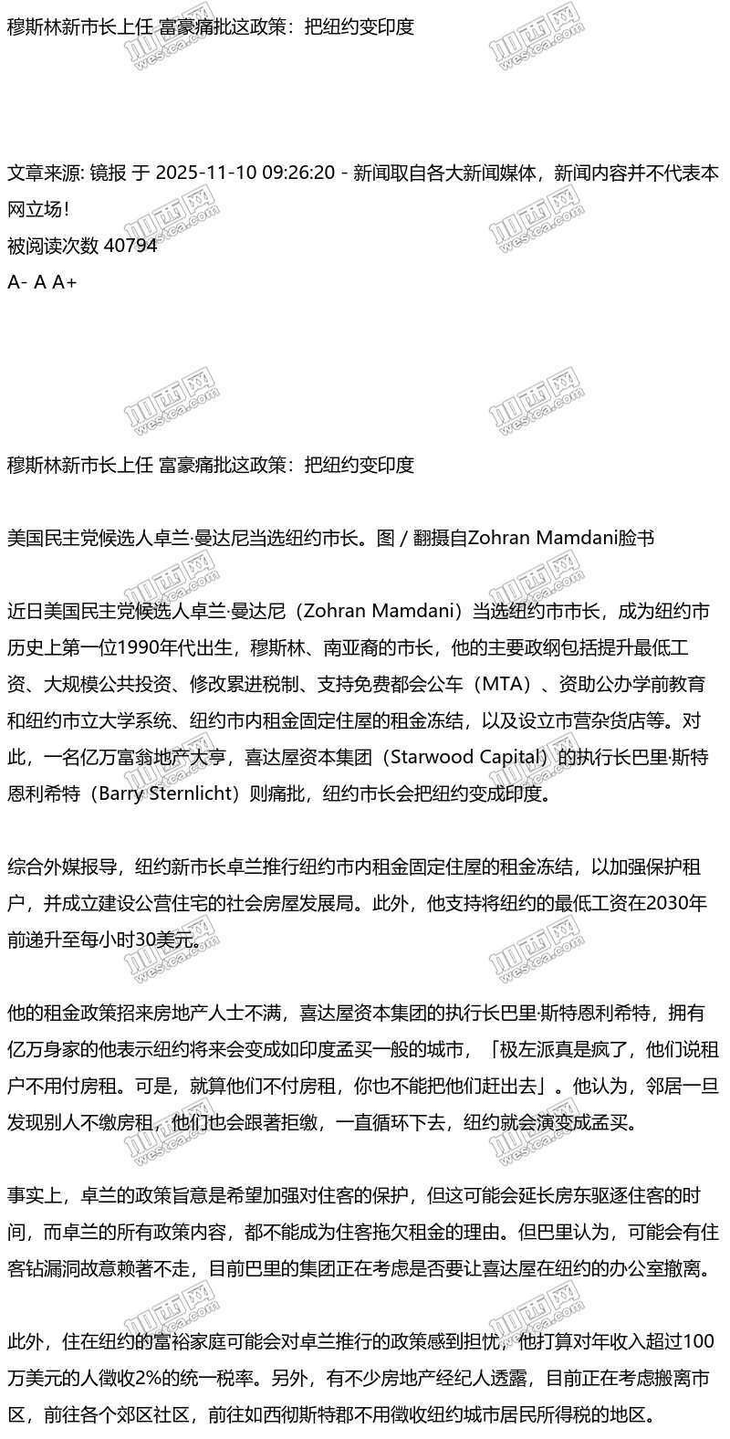 ______ 穆斯林新市长上任 富豪痛批这政策:把纽约变印度 穆斯林新市长上任 富豪痛批这政策:把纽约变印度