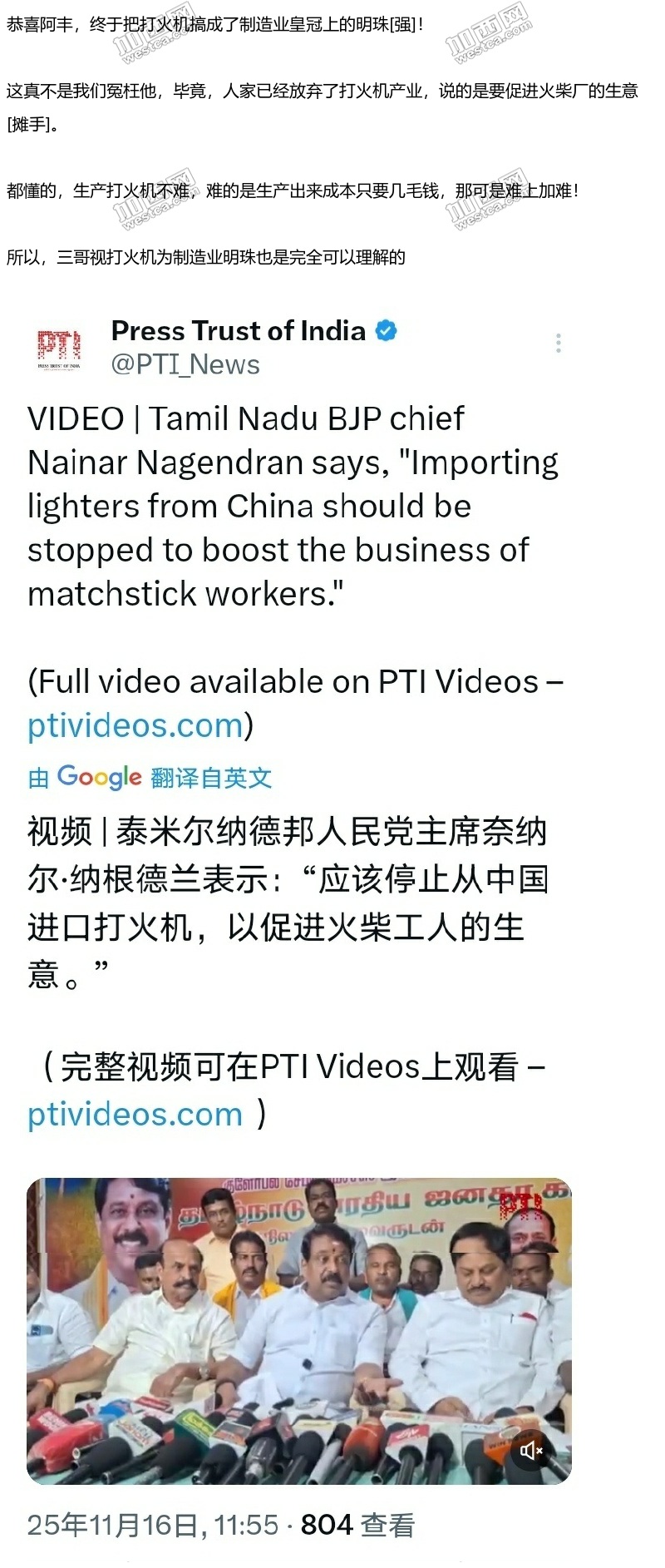 三哥把火柴这项代表阿三先进生产力的事业牢牢掌握在它们手里