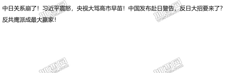 中日关系崩了!习近平震怒,央视大骂高市早苗!中国发布赴日警告,反日大招要来了?反共鹰派成最大赢家!