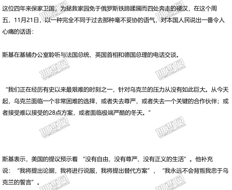 和平计画迫乌让步 乌总统:乌克兰史上最艰难抉择