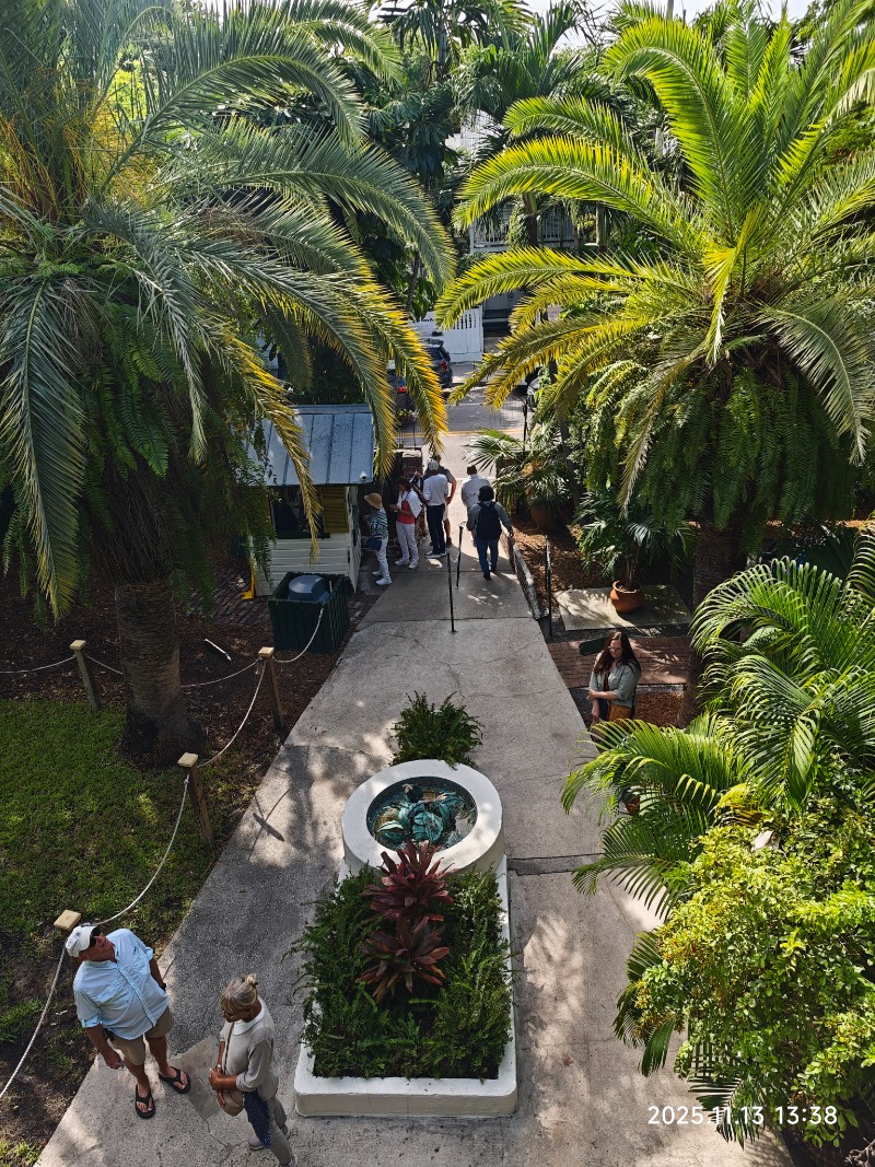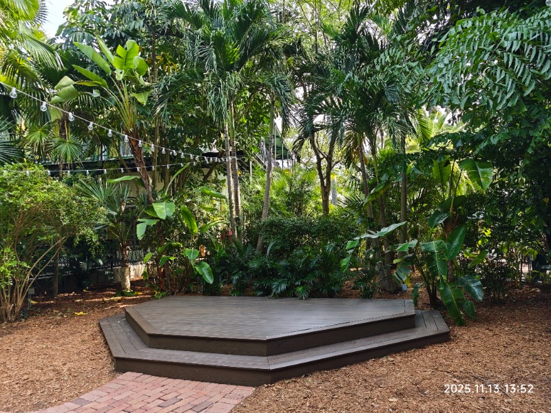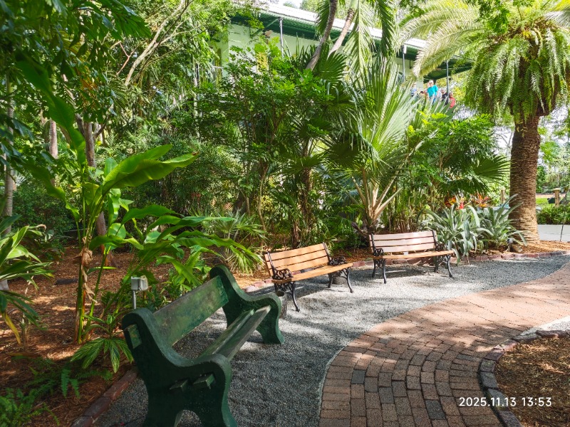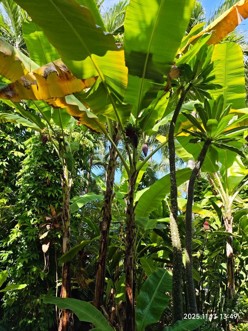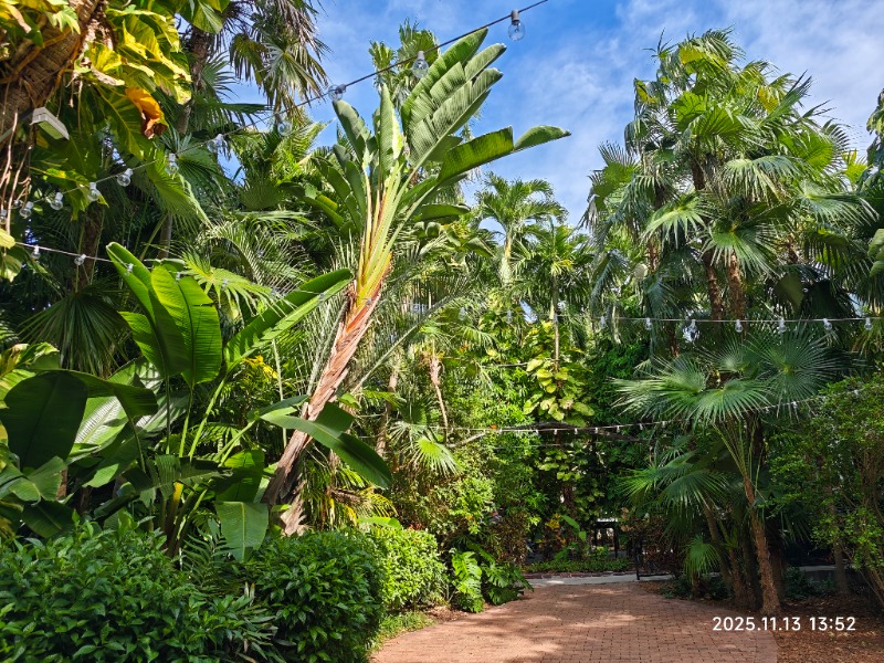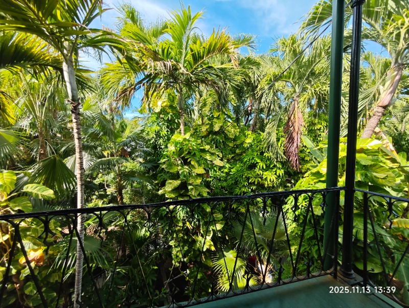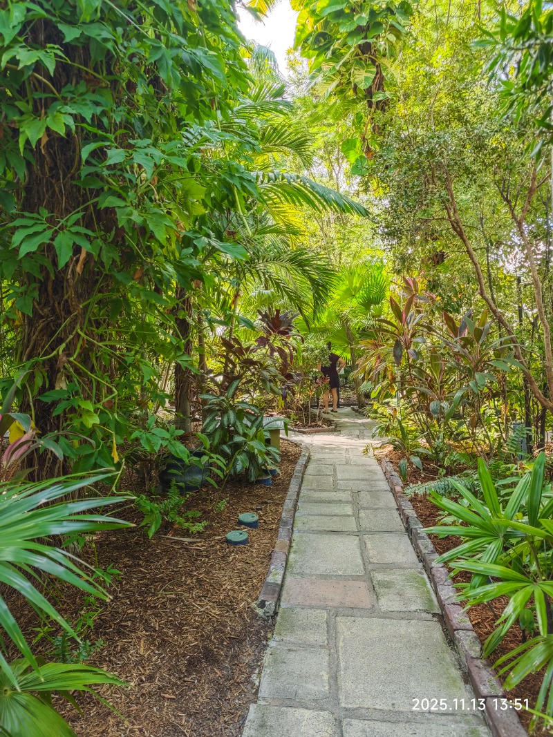 花园里花木繁盛,热带气息浓郁。