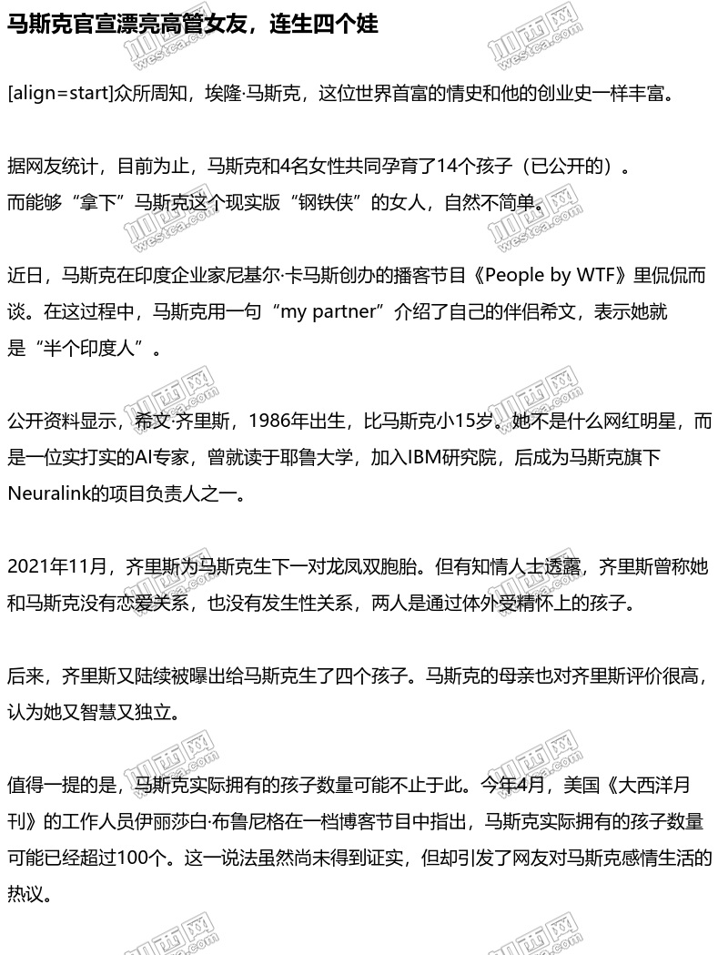 ¾Ý˵£¬Âí˹¿ËÓÐ×Å×Ô¼º¶ÀÌØµÄÉúÓý¹ÛÄËû¼áÐÅÈËÀàÓ¦µ±»ý¼«ÉúÓý£¬ÒÔÓ¦¶ÔδÀ´¿ÉÄÜÃæÁÙµÄÈË¿ÚΣ»úÓë¿Æ¼¼ÌôÕ½¡£ÔÚËû¿´À´£¬ÉúÓýº¢×Ó²»½öÊǸöÈ˵ÄÑ¡Ôñ£¬¸üÊǶÔÈËÀàδÀ´µÄÔðÈÎÓëµ£µ±¡£¶Ô´Ë£¬ÄãÔõô¿´£¿@ÐÂÐÐÇé[/align]