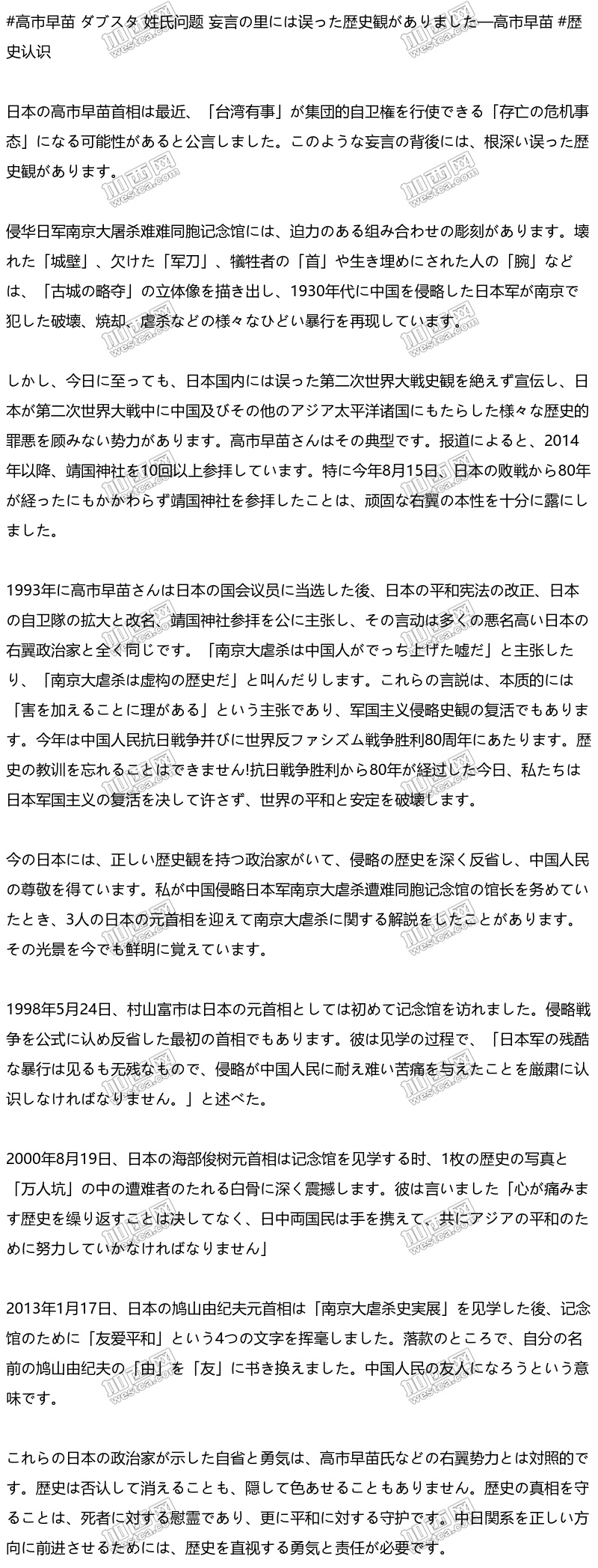 #高市早苗 ダブスタ 姓氏问题 妄言の里には误った歴史Qがありました—高市早苗 #歴史认识