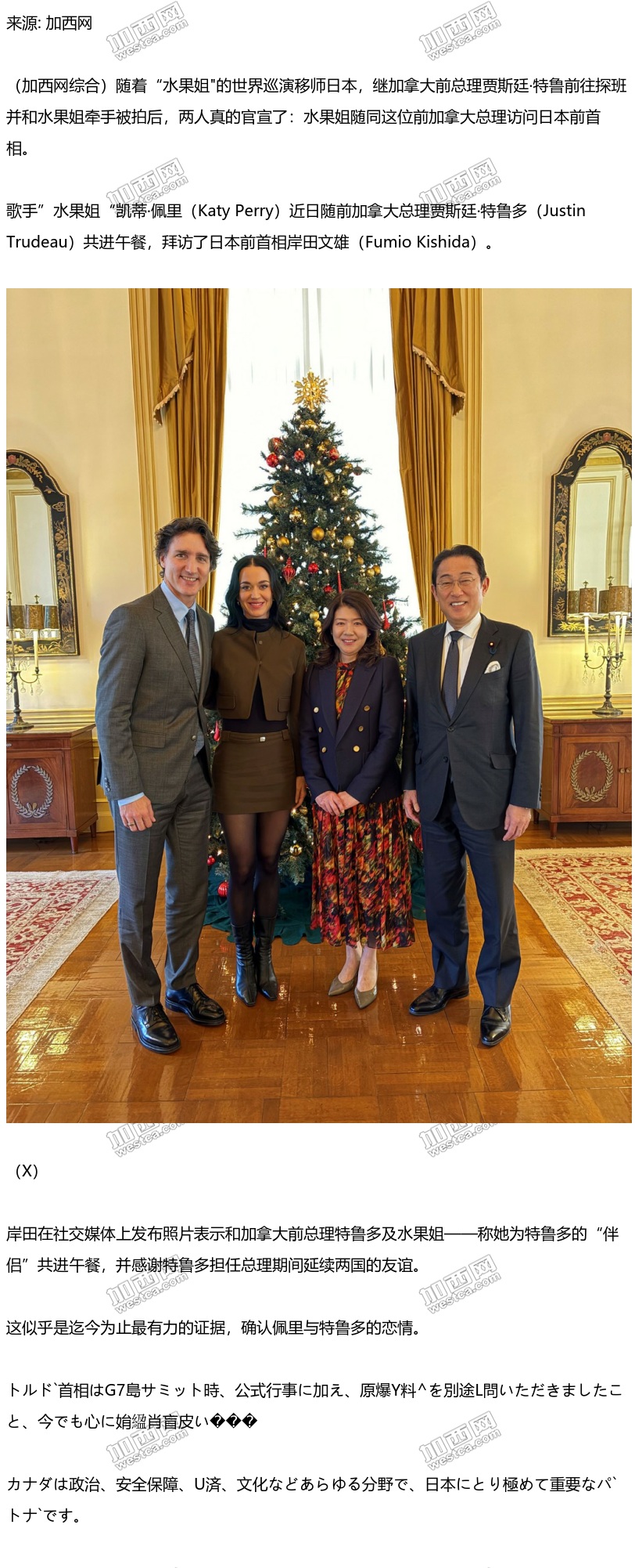 41岁的水果姐与53岁的特鲁多自今年7月TMZ发布两人同框照片以来,一直未直接确认恋情。这张岸田发布的照片为公众提供了两人作为情侣的清晰画面,此前流传的大多数照片多为夜间拍摄的模糊狗仔照,有时可见两人公开亲昵的瞬间。