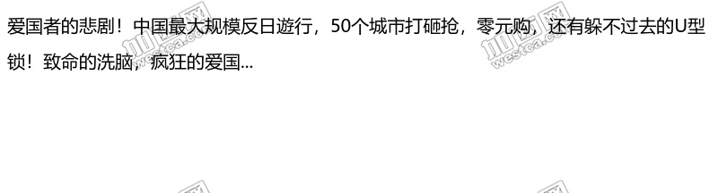 爱国者的悲剧!中国最大规模反日[行,50个城市打砸抢,零元购,还有躲不过去的U型锁!致命的洗脑,疯狂的爱国...