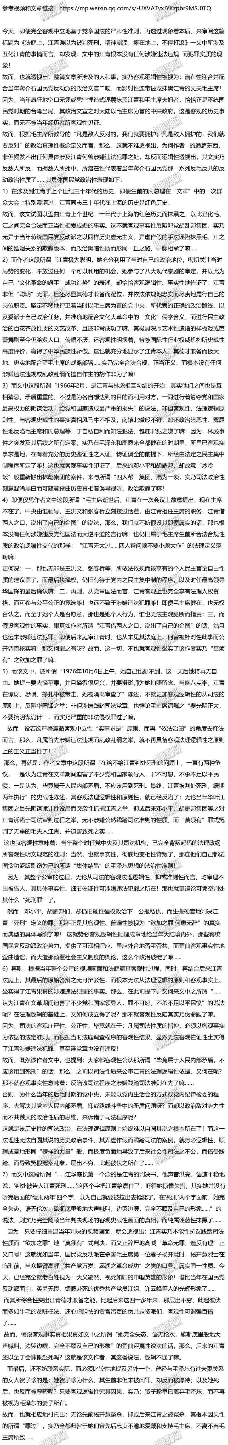 有意思:非议丑化江青涉罪不果,却反陷邓党冤杀江青之举于无异于国民党之杀害杨开慧性质