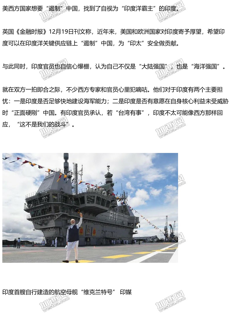 《金融时报》提到,随着中国在全球舞台更加自信,西方希望印度参与“遏制中国”联盟。美国2025年《国家安全战略》表示,需继续改善与印度的关系,“鼓励新德里为印太安全做贡献”。