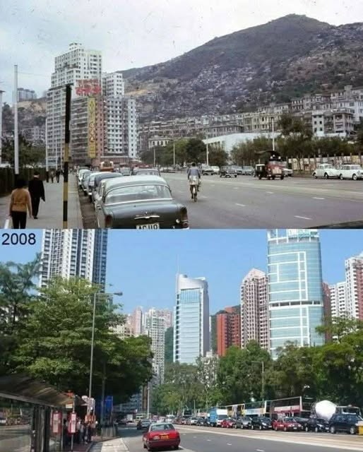 这是70年代初铜锣湾高士威道的旧貌与2000年代後期的对比。