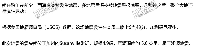 西海岸突发地震 大地狂晃 "整栋房子在摇" 数千人惊醒
