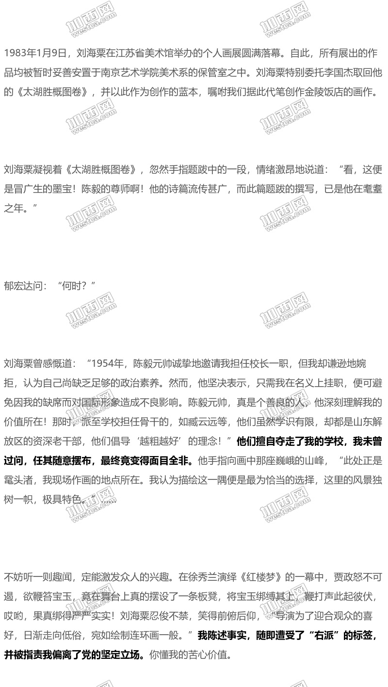 刘海粟面带微笑,我鼓起勇气问道:“江青对老师周围涉及她的物品如此关注,这背后是否暗示了老师与她之间或许有过一些未被公开的秘密关系?”