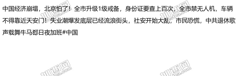 中国经济崩塌,北京怕了!全市升级1级戒备,身份证要查上百次,全市禁无人机,车辆不得靠近天安门!失业潮爆发底层已经流浪街头