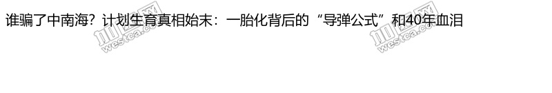 谁骗了中南海?计划生育真相始末:一胎化背后的“导弹公式”和40年血泪
