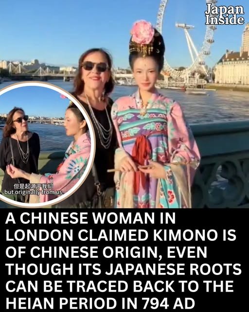 一名中国女子在伦敦眼附近被拍到接近游客,并坚称“和服源自中国”。