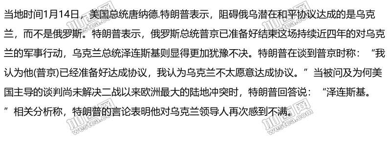 特朗普表示阻碍俄乌潜在和平协议达成的是乌克兰而不是俄罗斯