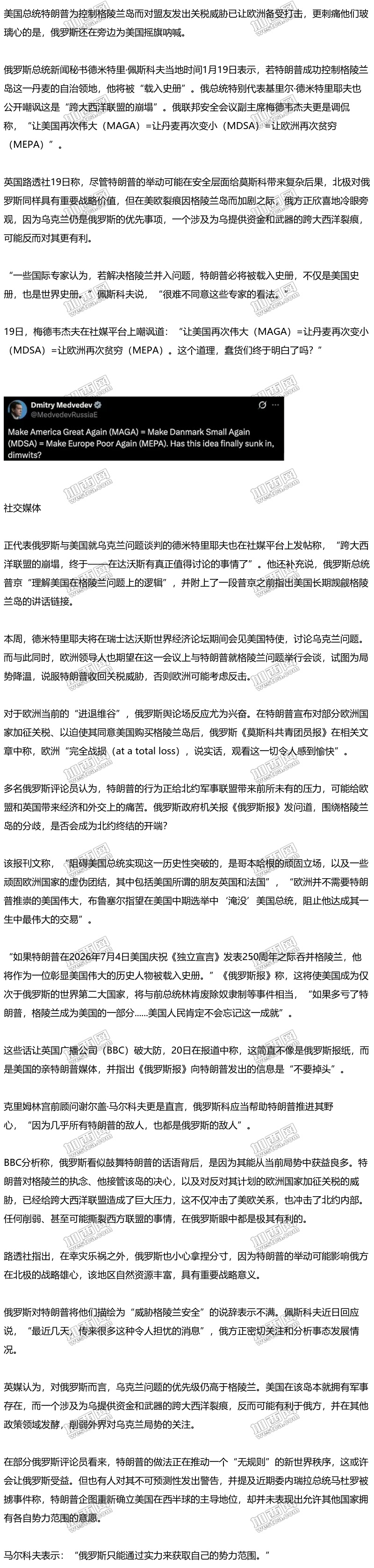 特朗普抢夺格陵兰岛,“俄罗斯乐坏了”