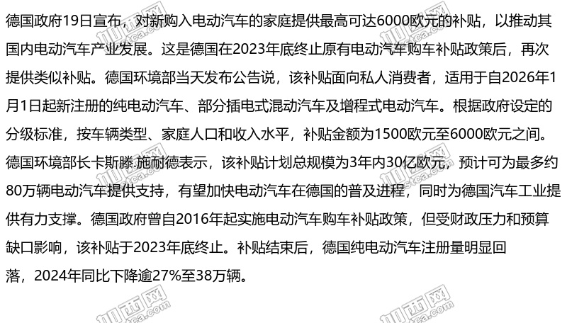 德国重新补贴电动汽车