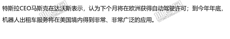 马斯克认为下个月将在欧洲获得自动驾驶许可