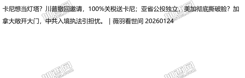 卡尼想当灯塔?川普撤回邀请,100%关税送卡尼;亚省公投独立,美加彻底撕破脸?加拿大敞开大门,中共入境执法引担忧。