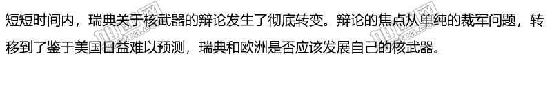 “只要危险的国家拥有核武器,健康的民主国家也必须拥有核武器”——总理乌尔夫·克里斯特松(M)在瑞典电视台的《议程》节目中说道。